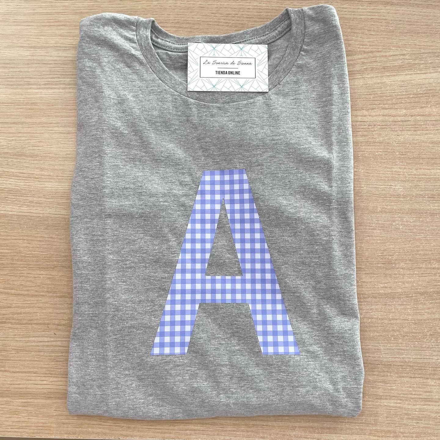 Camiseta personalizada con la inicial en Vichy, o con inicial + nombre.