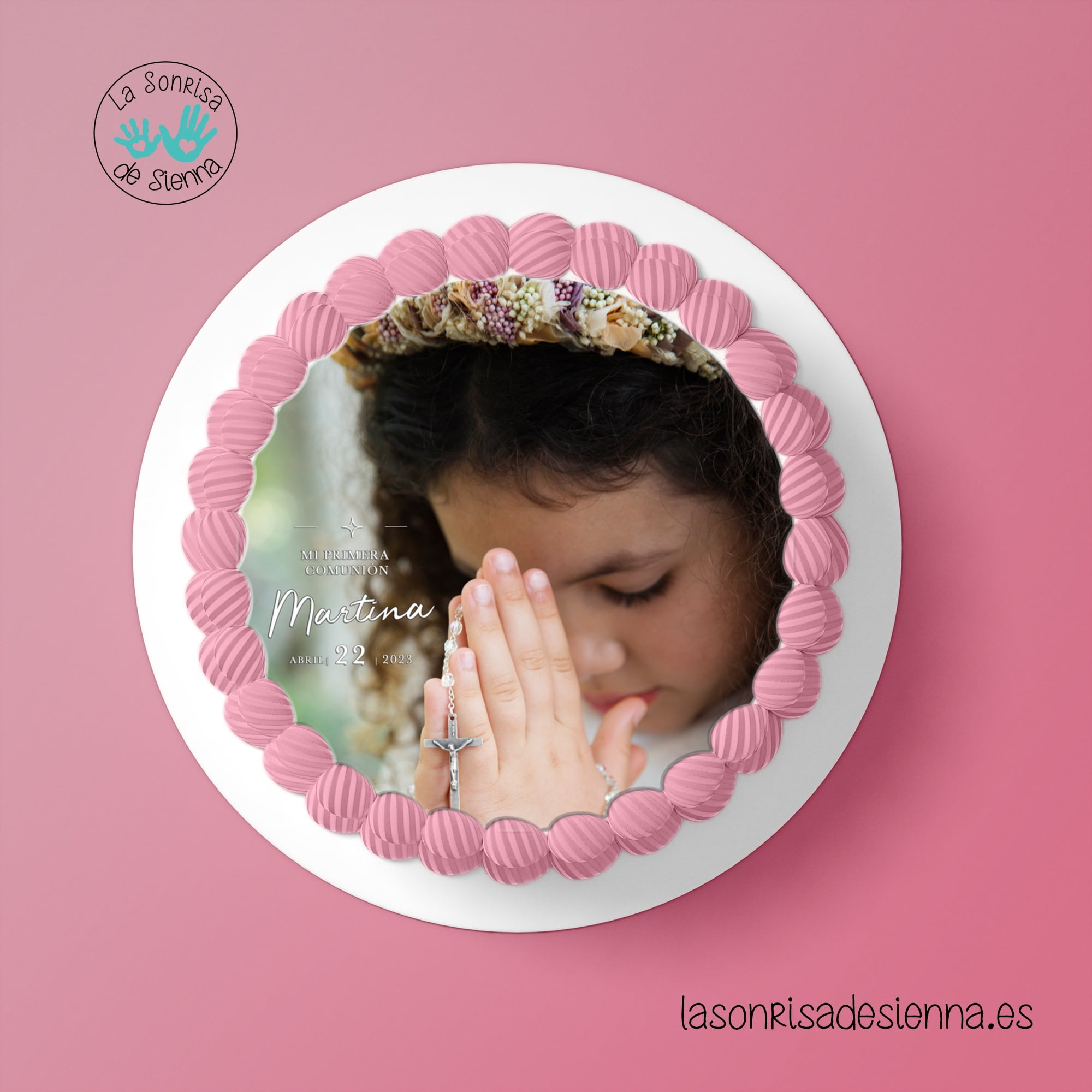 Foto comestible personalizada con fotografía, nombre y fecha del evento.