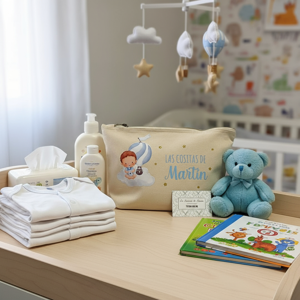Neceser 100% algodón con fuelle. Ideal para llevar organizadas las cositas de tu bebé.