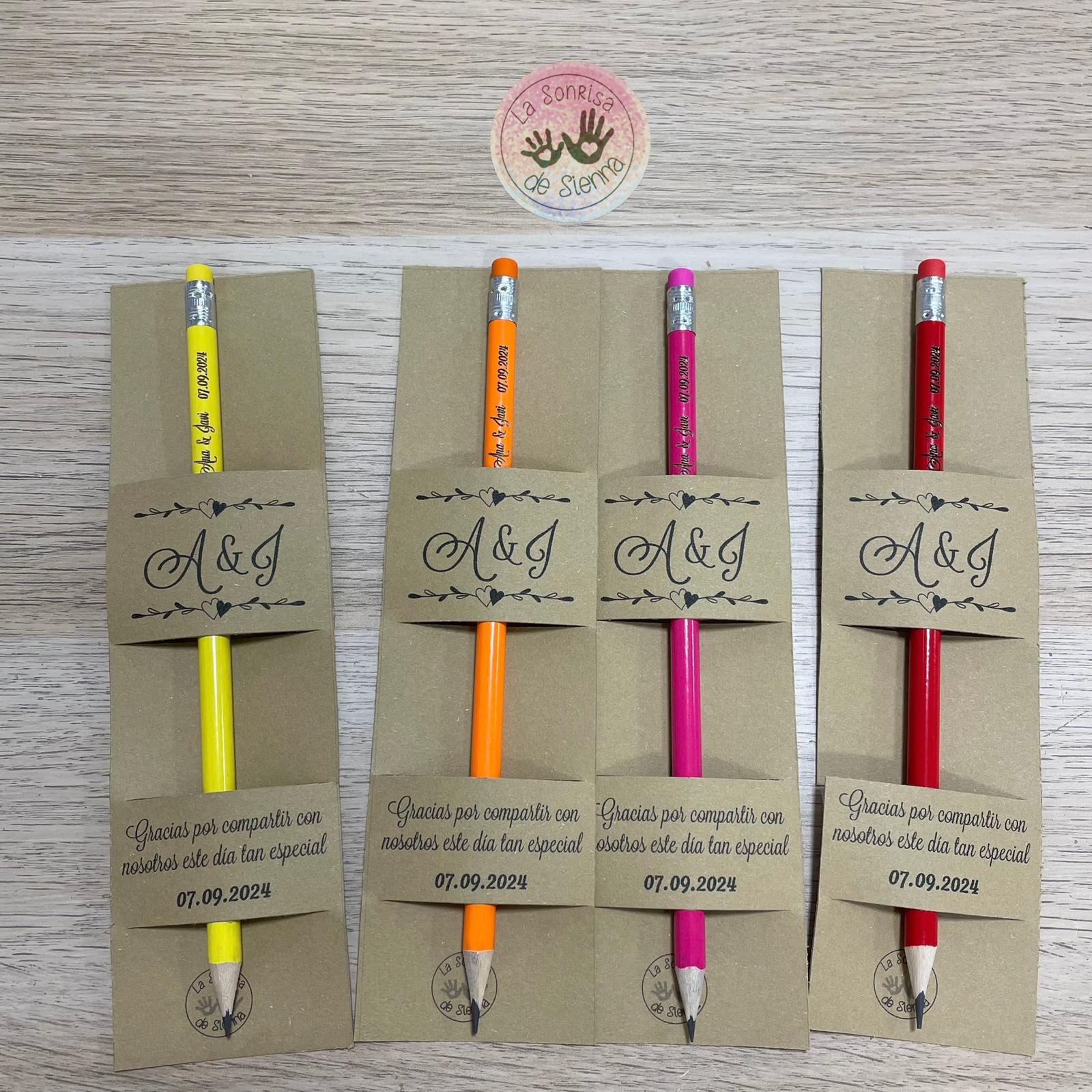 PACK de 10 lápices personalizados para BODA. Escribe los nombres de los novios/novias y fecha de enlace. Surtido colores aleatorio.