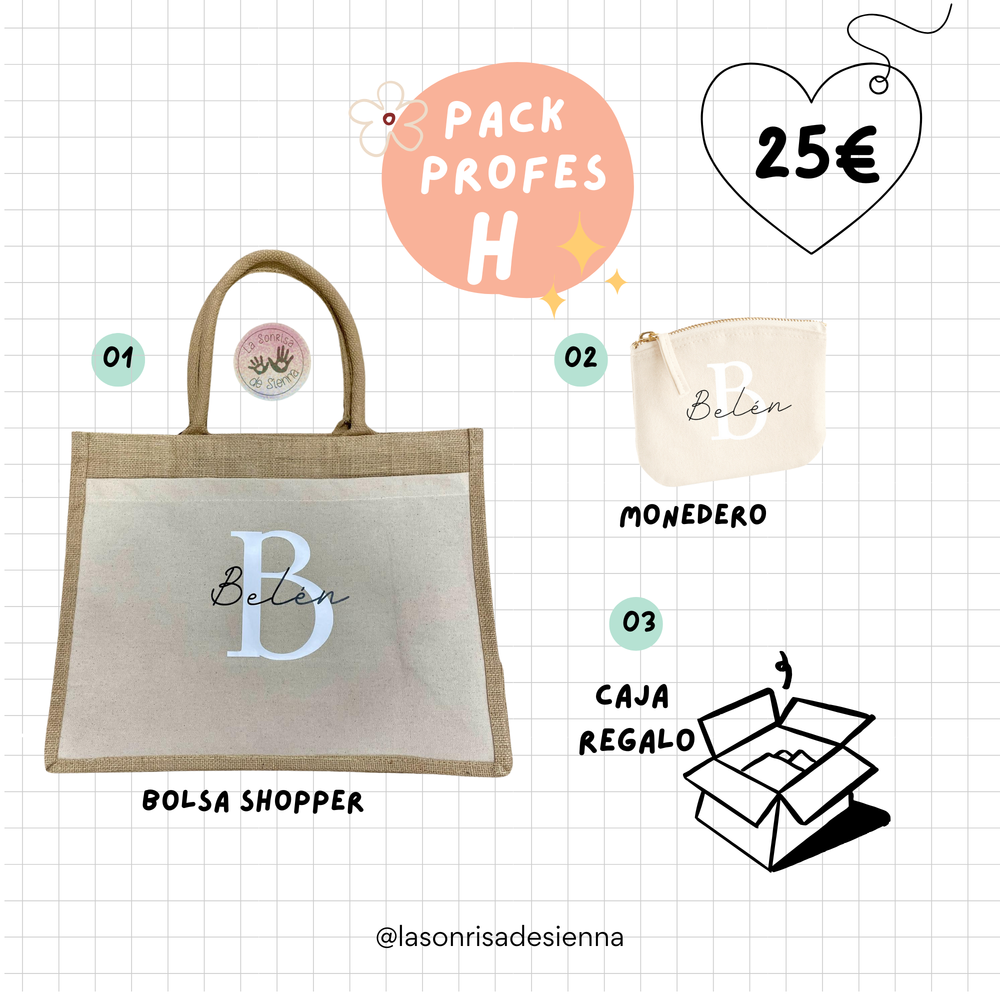 PACK G: Bolsa shopper y monedero personalizado con inicial y nombre.