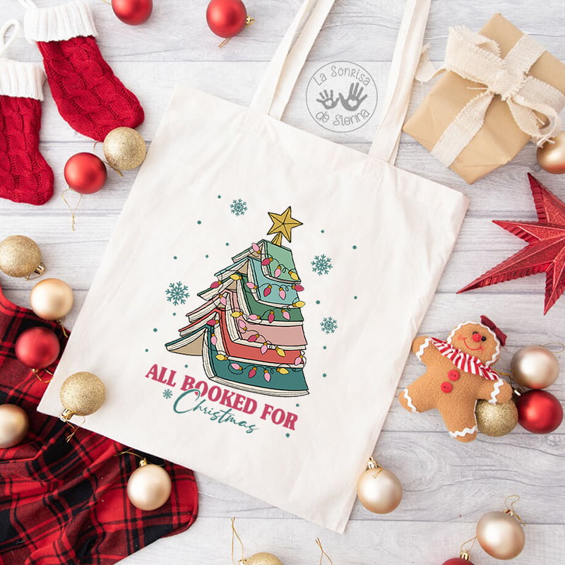 Bolsa de algodón reutilizable (38x42cm) de asa larga con diseño navideño muy especial.
